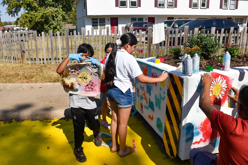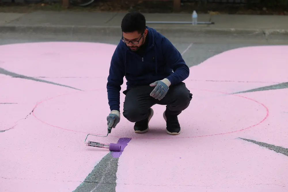 🖌️ We also painted a street mural at the new four-way stop! Not only does this slow down traffic, but it also is much more enjoyable than gray concrete.