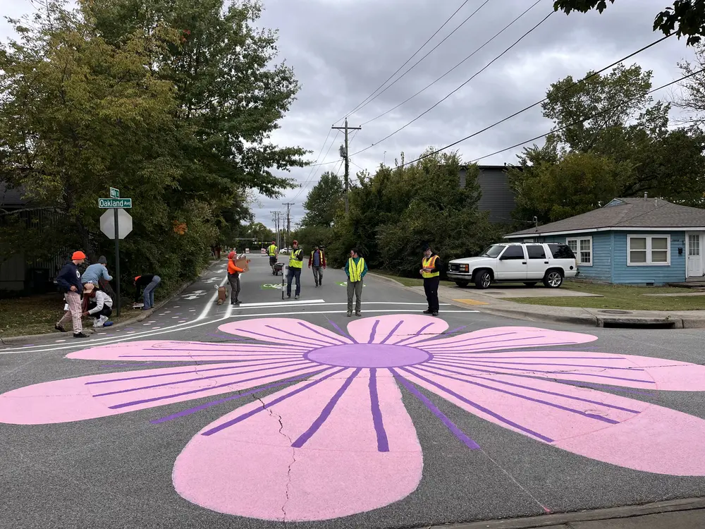 Many hands made this project possible, from those who helped in the planning stages to those who braved the heat to bring it to life. A huge shoutout to the families from the neighborhood who joined us for installation day, and to Marco’s Pizza for pitching in a few pizzas to keep us fueled! 🍕 Special thanks to Councilmember Monique Jones for showing up and supporting this effort—we’d love to continue working together to make Fayetteville’s streets safer for everyone.