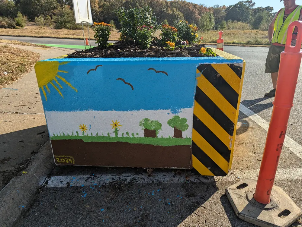 🎨 We painted bump-outs, installed armadillos, painted the concrete boxes and planted some hearty greenery in them.